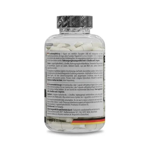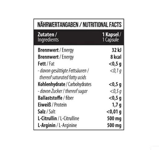 Maximaler Pump und verbesserte Durchblutung. L-Arginin und L-Citrullin unterstützen die Sauerstoffversorgung der Muskeln und steigern die Leistungsfähigkeit.
